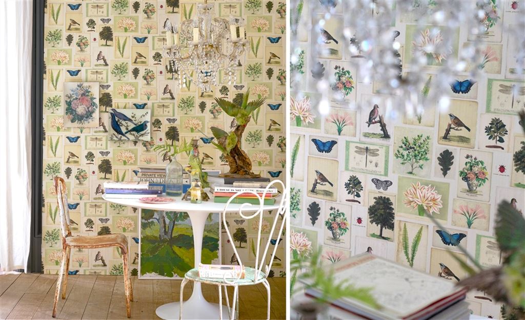 Para la producción de los papeles pintados, el equipo de Designers Guild contó con acceso al extenso archivo de impresiones decoupage de John Derian, obteniendo como resultado una sugerente oda a la memoria y los sentimientos que también quedó plasmada en la colección de telas y cojines. Una cuidada selección que hará las delicias de todos aquellos que quieran para su hogar materiales capaces de evocar un ambiente campestre, fresco y lleno de personalidad.